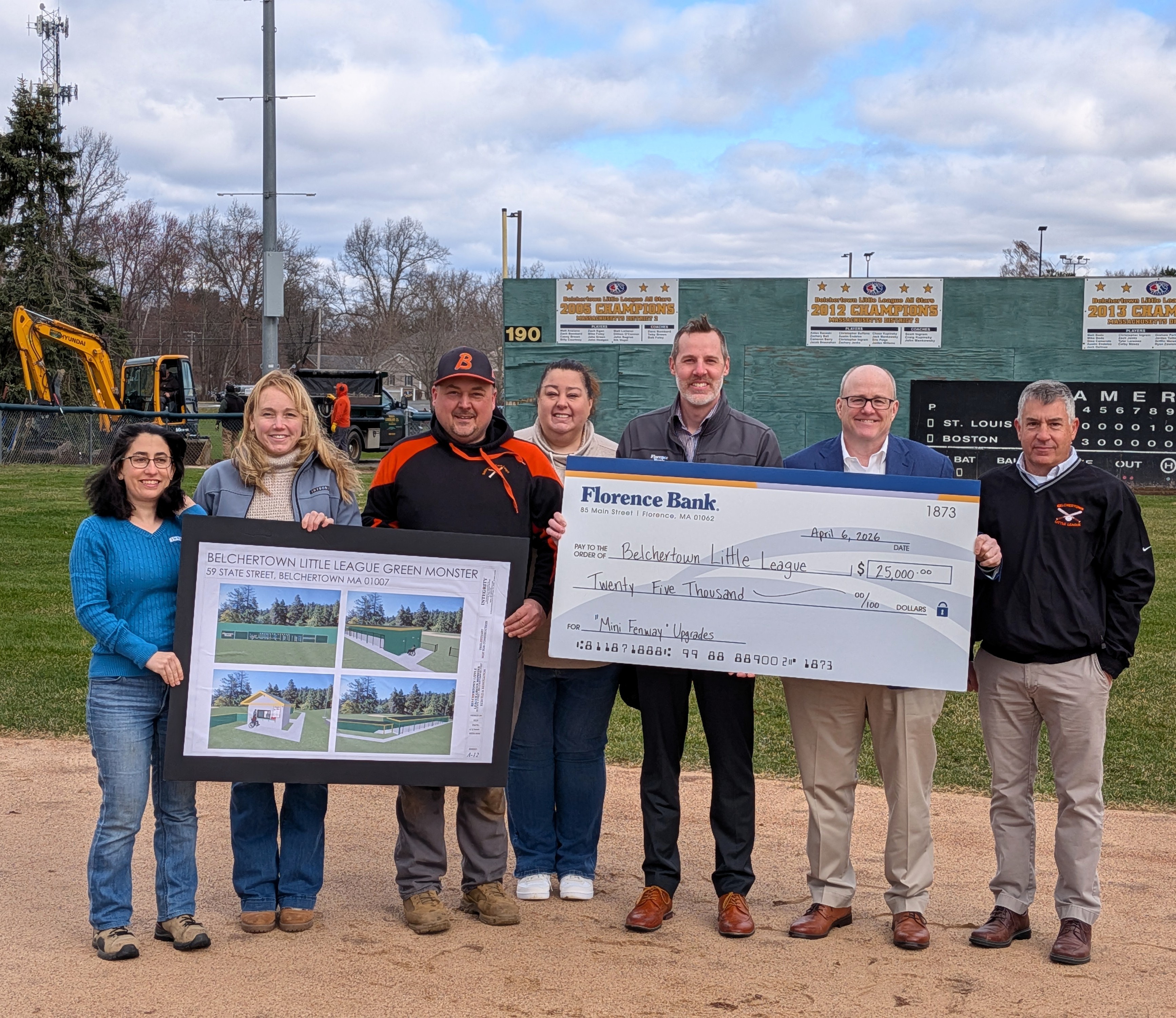 Florence Bank is pleased to announce it has donated $25,000 to the Belchertown Little League to support the renovation of Hulmes-Warner Field, affectionately known as “Mini Fenway.”